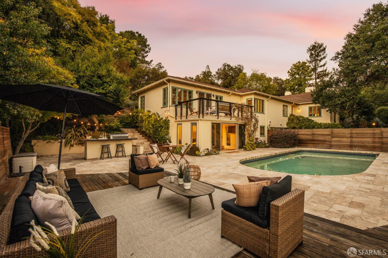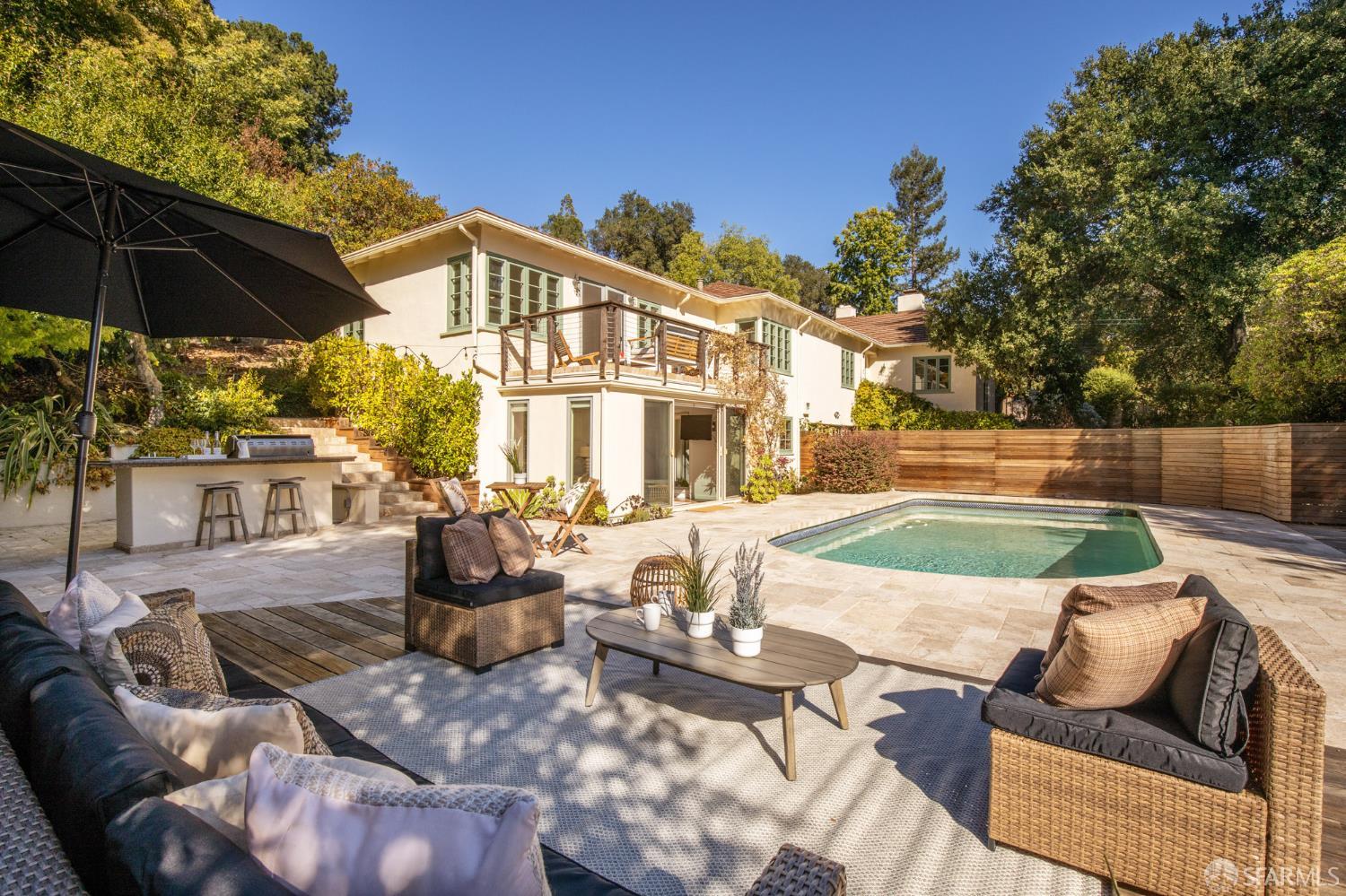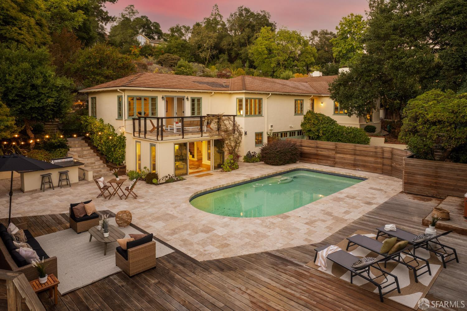 Built by Walter Christie in 1938 and tucked on a charming cul-de-sac in the Orinda Country Club hills, 23 El Verano has been cherished by only three families across nearly nine decadeseach leaving a thoughtful mark on this remarkable property. Set on a private .78-acre lot, the home offers 4+ bedrooms and 3 baths, multiple fireplaces, and timeless warmth. A beautifully renovated eat-in kitchen opens to a spacious family room and patios on both sides, complemented by formal living and dining areas ideal for everyday living and entertaining. The private primary suite features a large bath with jetted tub, separate shower, and a serene deck overlooking the pool and hills beyond. Four bedrooms plus an office on one level create an ideal layout. Downstairs, a flexible second living space offers pool access, a full bath, and laundry room. Outdoors, terraced gardens, fruit trees, greenhouse, and hillside nooks invite year-round enjoyment. A solar-heated pool, hot tub, outdoor kitchen, and putting green complete this exceptional homea true legacy property awaiting its next chapter.