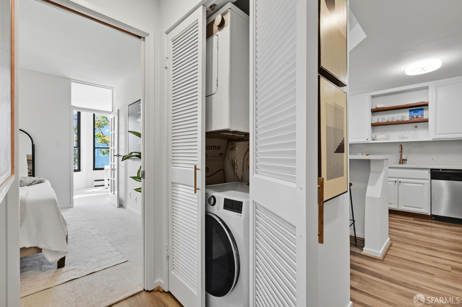 Welcome to this beautifully updated 1BR/1BA condo at the intersection of SF's most vibrant neighborhoods Mission Dolores, Duboce Triangle, and the Castro. With a stellar Walk Score, you're also just steps to BART, Muni, Dolores Park, and endless dining, shopping, and entertainment options. Inside, the open floor plan is anchored by a remodeled kitchen with stainless steel appliances, beautiful finishes, and thoughtful storage solutions. The spacious living and dining area features a cozy fireplace and opens to your private outdoor deck perfect for morning coffee or evening relaxation. The bedroom offers privacy, a large closet with an organizer system, and plenty of natural light. Set within The Church Street Gardens, this community offers an impressive array of amenities: a sprawling and peaceful park-like setting with mature landscaping and grassy grove, BBQ area, club room and sauna. The home also comes with garage parking, in-unit laundry, a generous storage unit, elevator access, and earthquake insurance included - a complete package of comfort and convenience.